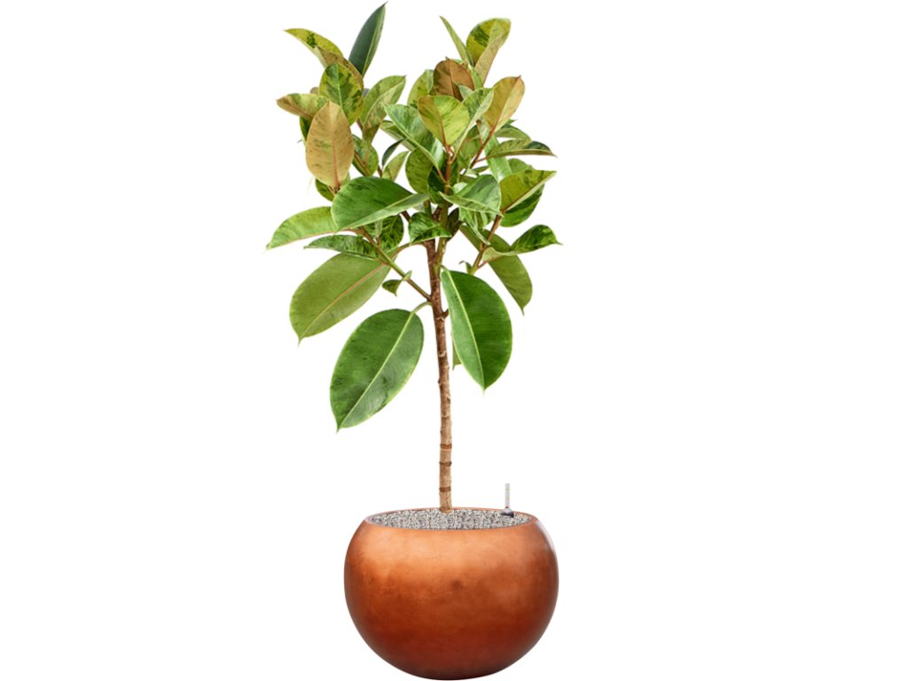 Ficus elastica 'Shivereana Moonshine' in Baq Metallic R30cm V145cm
