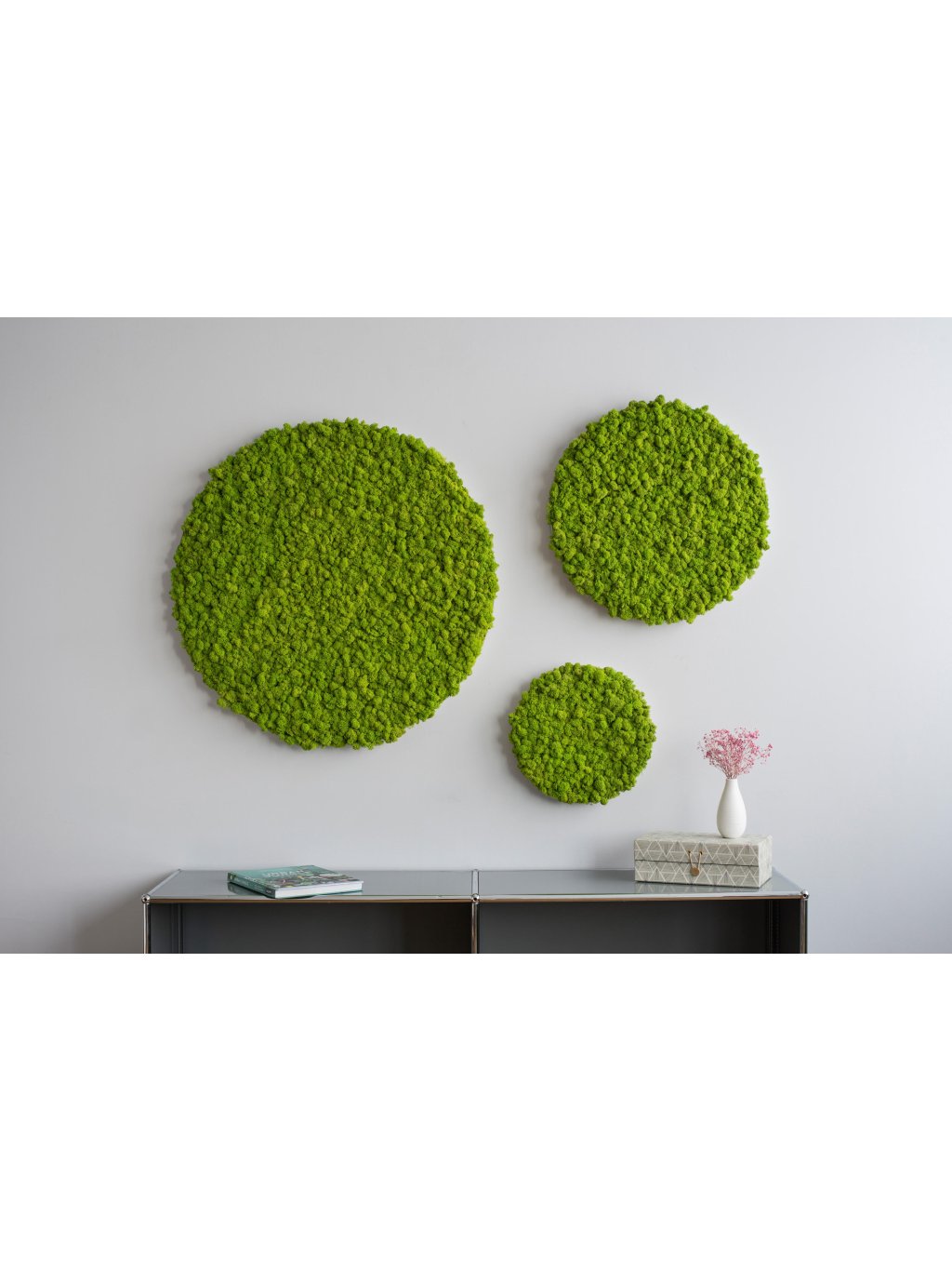 Nádherné okrúhle tvary machových obrazov „Moon“ dodajú vášmu domovu jemný dotyk prírody. Krásne a decentne dotvorí každý interiér kancelárie, bytu či domu.