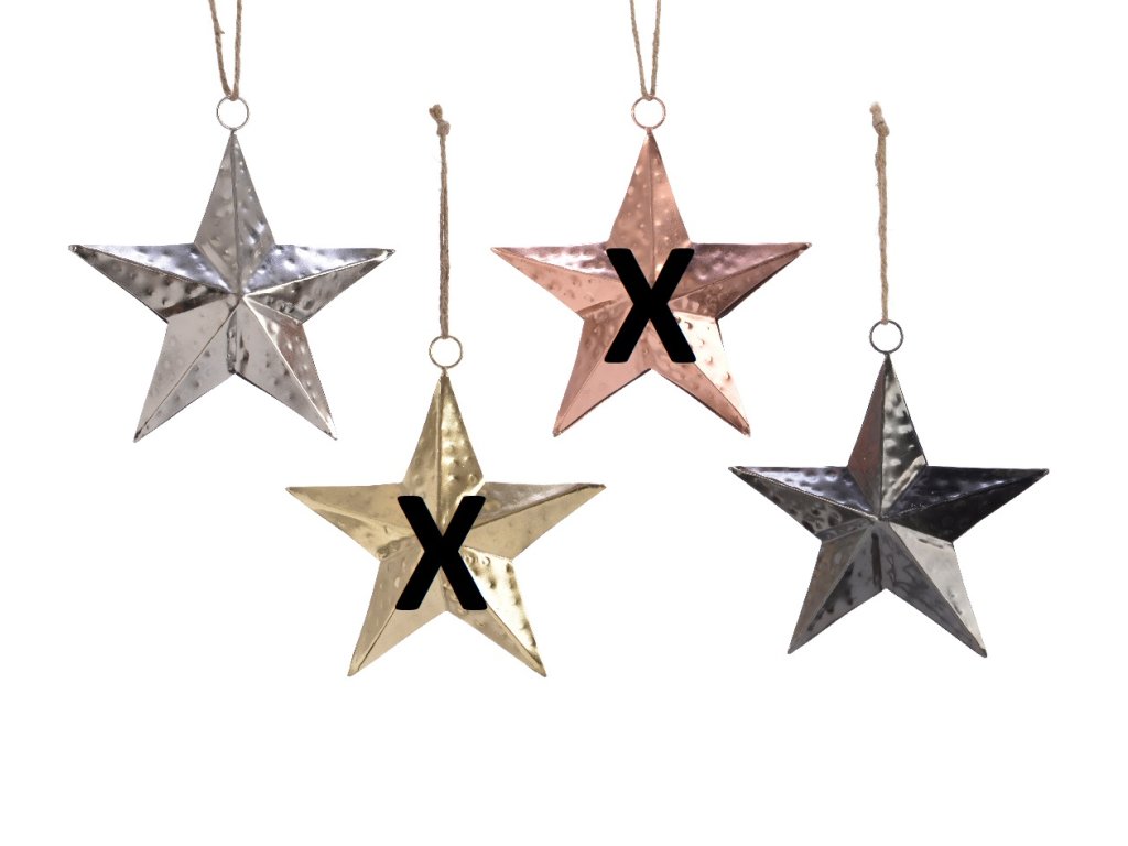 Vianočná ozdoba - moderná kovová hviezdička. Dostupná v rôznych prevedeniach.