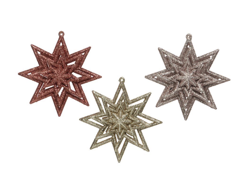 Vianočná ozdoba - plastová trblietavá hviezdička, 10,5x14x5cm